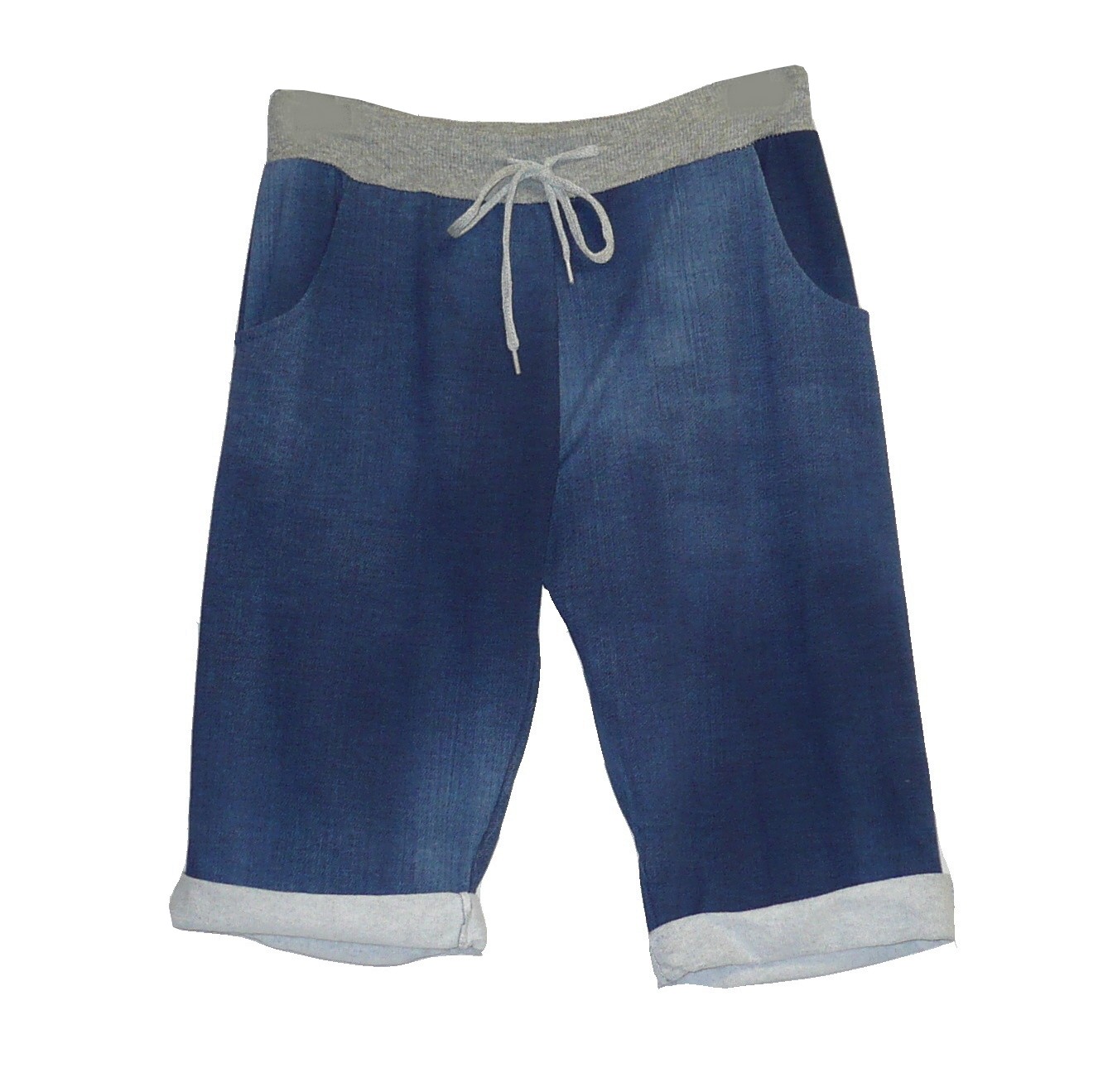 Dámské elegantní 3/4 tepláky: Složení 95% bavlna, 5% elastan, v pase pružná guma + tkanička, na bocích dvě kapsy, nohavice lze nosit klasicky nebo i ohrnuté. Délka kalhot je měřena v narovnaném stavu, neohrnuté. Vel.UNI = odpovídá M/L  = délka 65cm, vnitřní délka 38cm, pas v klidu 34x2cm (pružný) celý popis