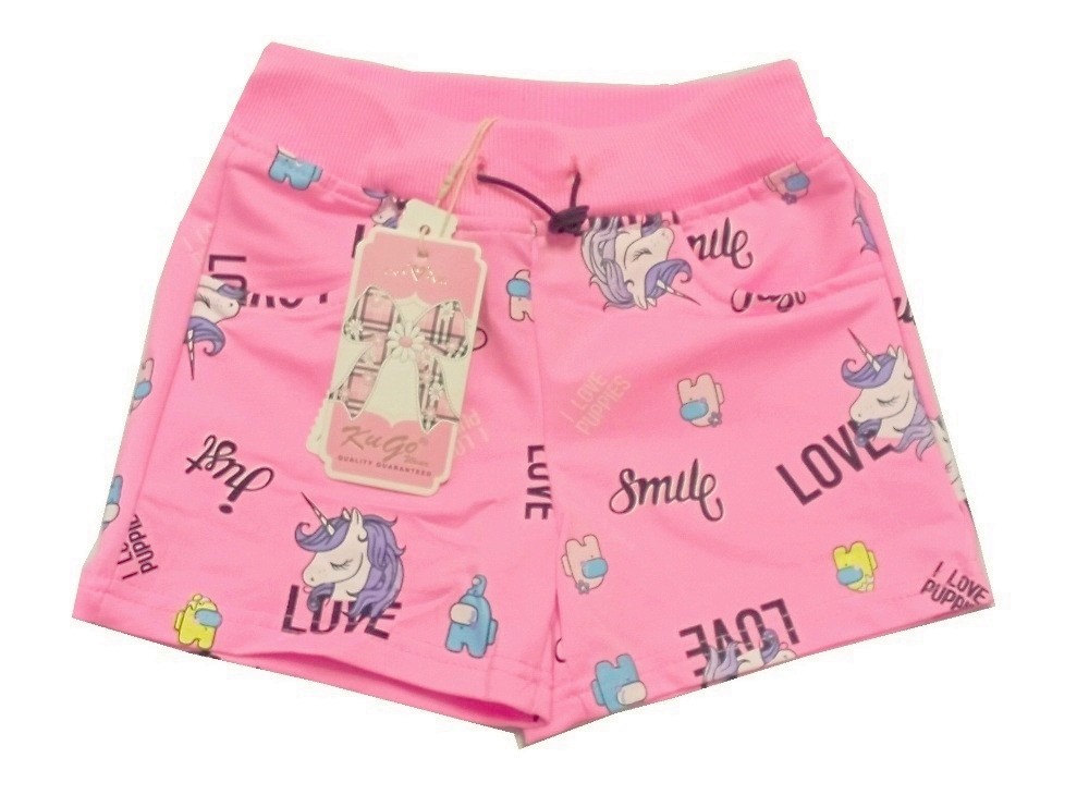 Dívčí kraťasy KUGO: Složení 95% bavlna, 5% elastan, v pase pružná guma + stahování, na bocích dvě kapsy, po celém povrchu obrázky poníků a Amongus.