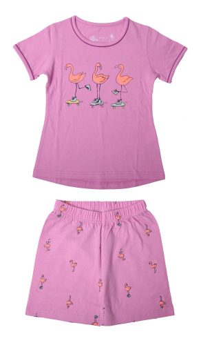 Dívčí letní komplet Wolf: Složení 100% balvna, na tričku obrázek plameňáků, u kalhot potisk plameňáků v pase pružná guma. Pohodlný bavlněný materiál, vhodné i na spaní jako pyžamo.