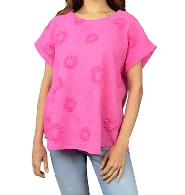 Dámská lehká halenka/tričko: Složení 100% bavlna, lehký, prodyšný a příjemný na dotek, snadná údržba a odolnost. Krátké rukávy, volný střih, normální délka - po boky, jemný květinový vzor s vyšívanými detaily, kulatý výstřih.
