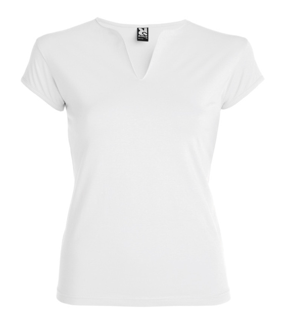 Dámské elegantní tričko s kulatým výstřihem prostřiženým do V. Krátké rukávky, velmi příjemný hladký materiál. Složení 95% bavlna, 5% elastan.