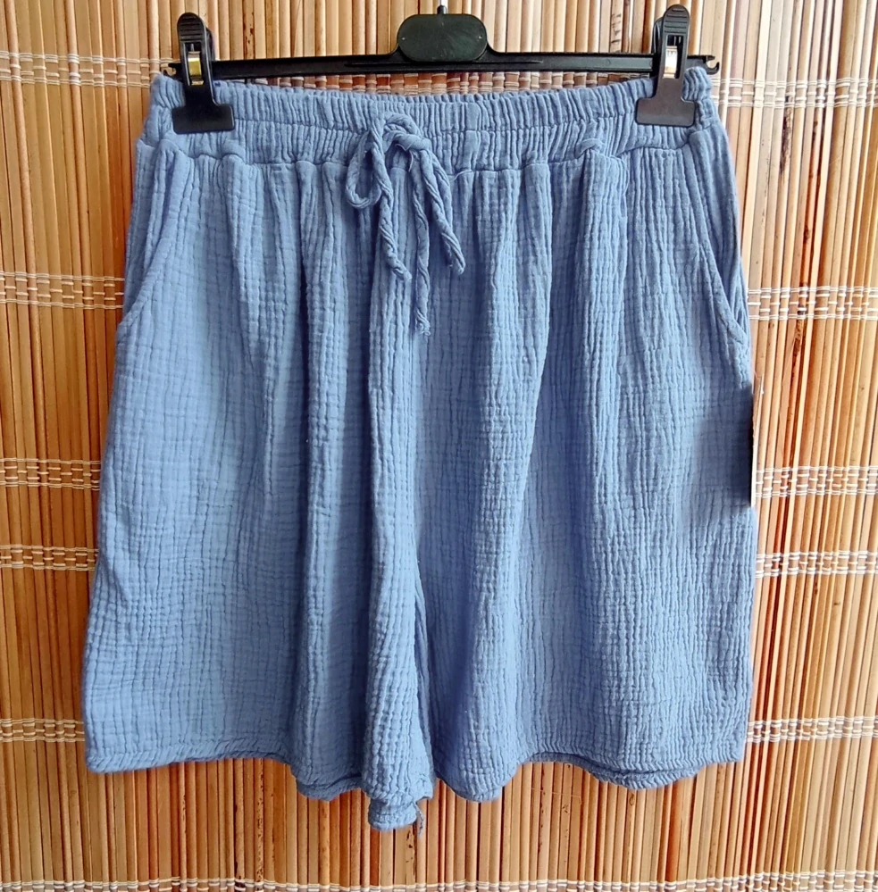 Dámské lehké kraťasy italská móda: Složení bavlna + polyester, lehký nemačkavý materiál, v pase pružná guma, na bocích dvě kapsy, široký volný střih.