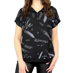 Dámské lehké tričko: Složení 50% Bavlna, 50% Viskóza, na předním díle nápisy, zadní díl jednobarevný, u krku dva knoflíky na rozepínání. Velmi příjemný lehký materiál.
