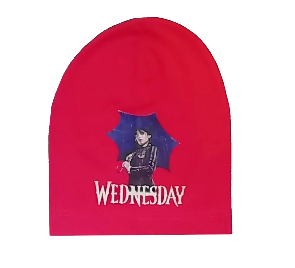 Dívčí jarní čepice Wednesday : Složení 95% bavlna, 5% elastan. Prodloužená délka, velikost odpovídá 8-14let.