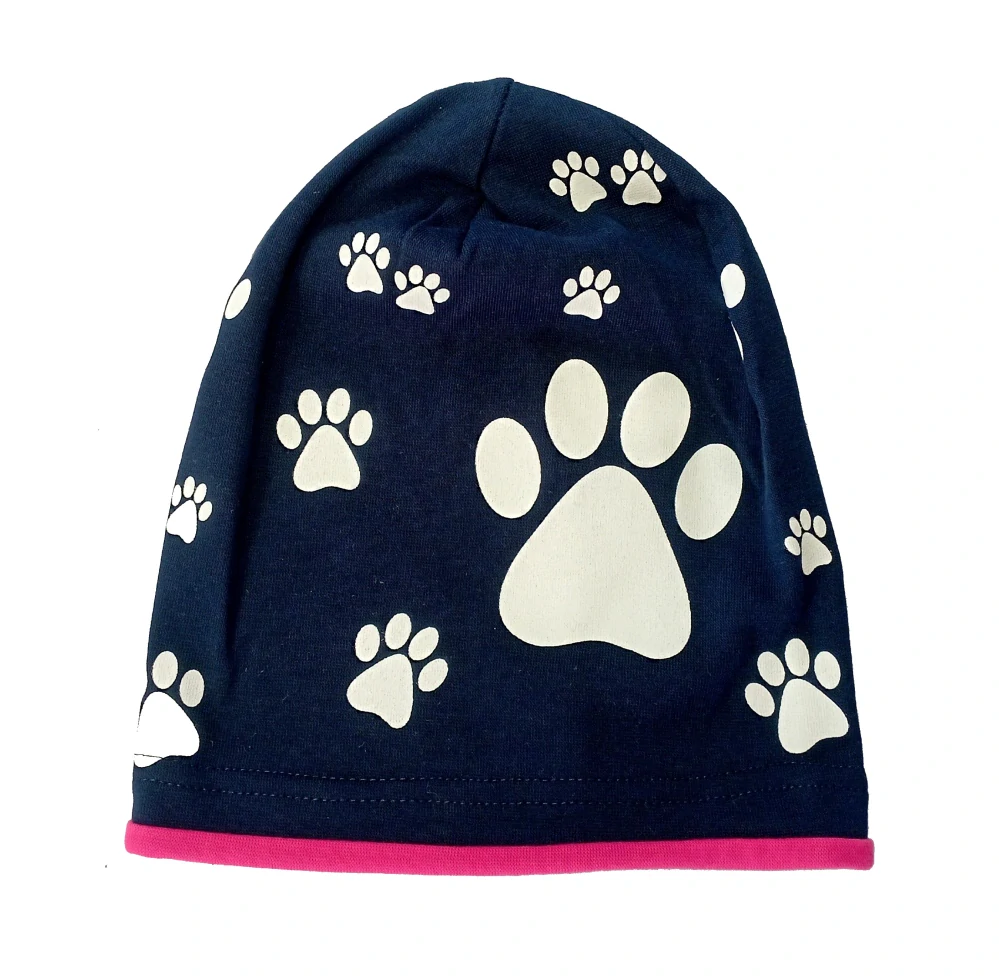 Dětská jarní čepice tlapky tm.modrá/tm.růžový lem vel.UNI(5-10let)