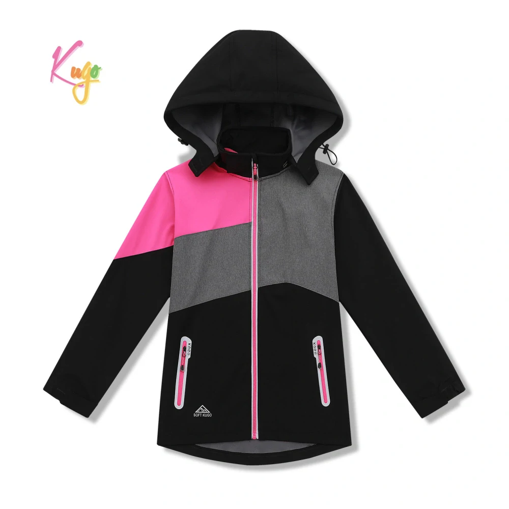 - Dětská jarní softsehllová bunda KUGO HK5660 růžovo/šedo/černá vel.140