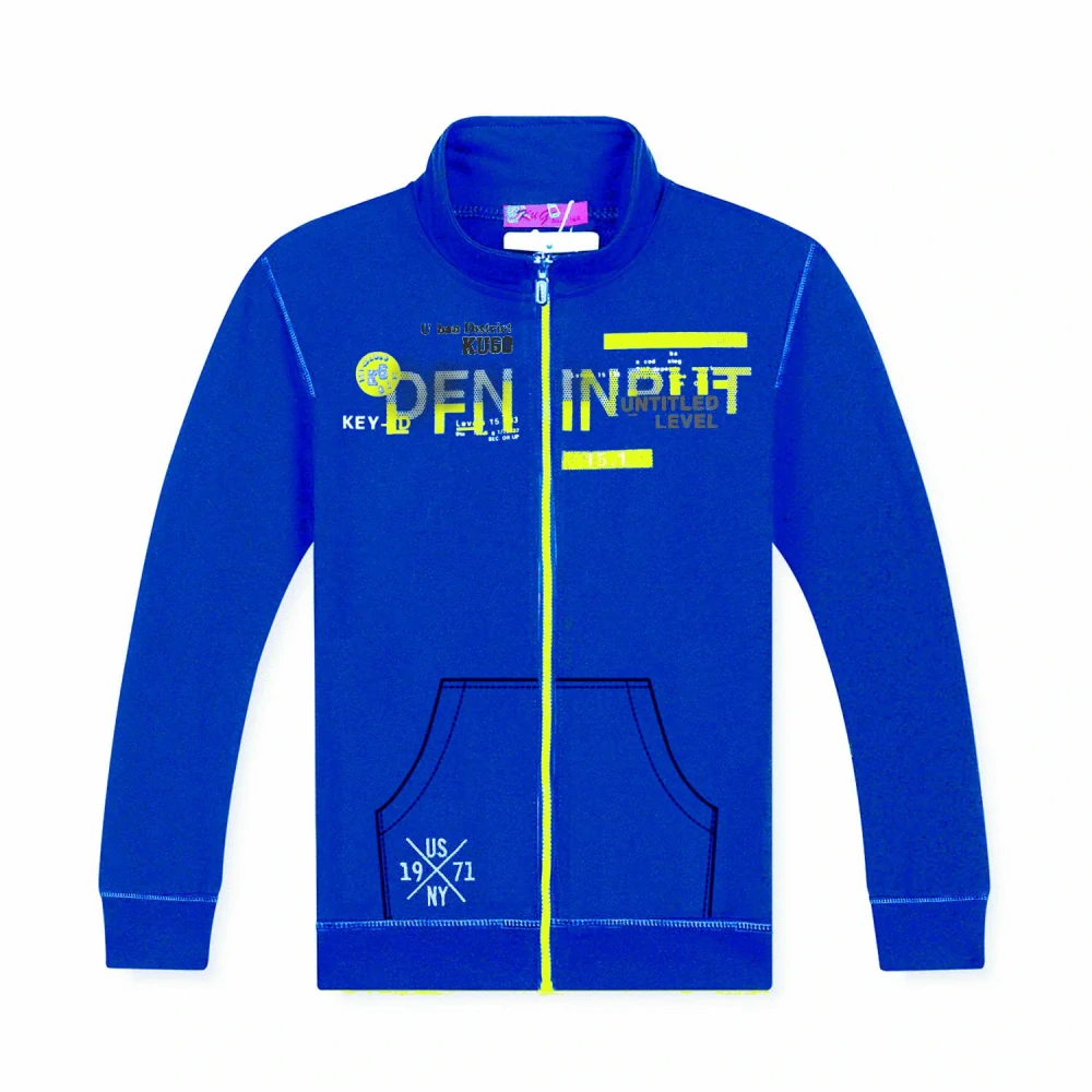 Chlapecká bavlněná mikina Kugo: Složení - 100% bavlna, propínací na zip, na bocích dvě kapsy, rukávy do manžet, na předním díle nápisy.