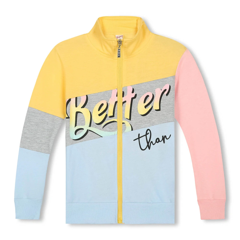 Dívčí mikina KUGO: Složení 65% bavlna, 35% polyester, na zapínání, dvě kapsy, na předním díle nápisy.