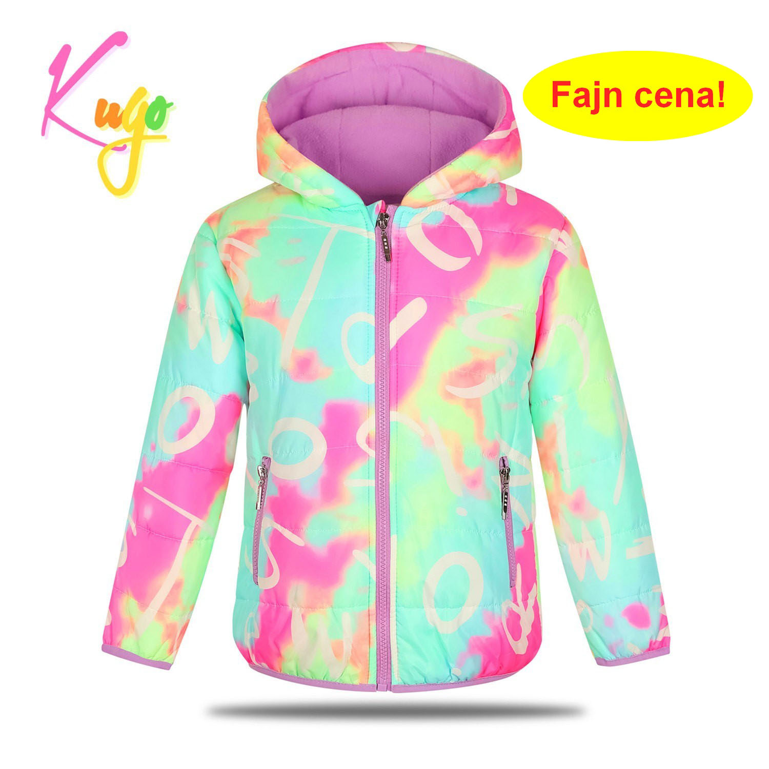 Dívčí zimní šusťáková bunda zateplená jemným flísem: Složení 100% polyester, bunda je prošívaná, vrchní materiál hladký matný šusťák, uvnitř teplá podšívka z jemného flísu, rukávy uvnitř zateplené a podšité šusťákem, zapínání po celé délce až ke krku, kde je krytí, kapuce je napevno, rukávy a dolní okraj mají pružný lem, na bocích dvě kapsy na zip. Bunda je vhodná na mírnou zimu.