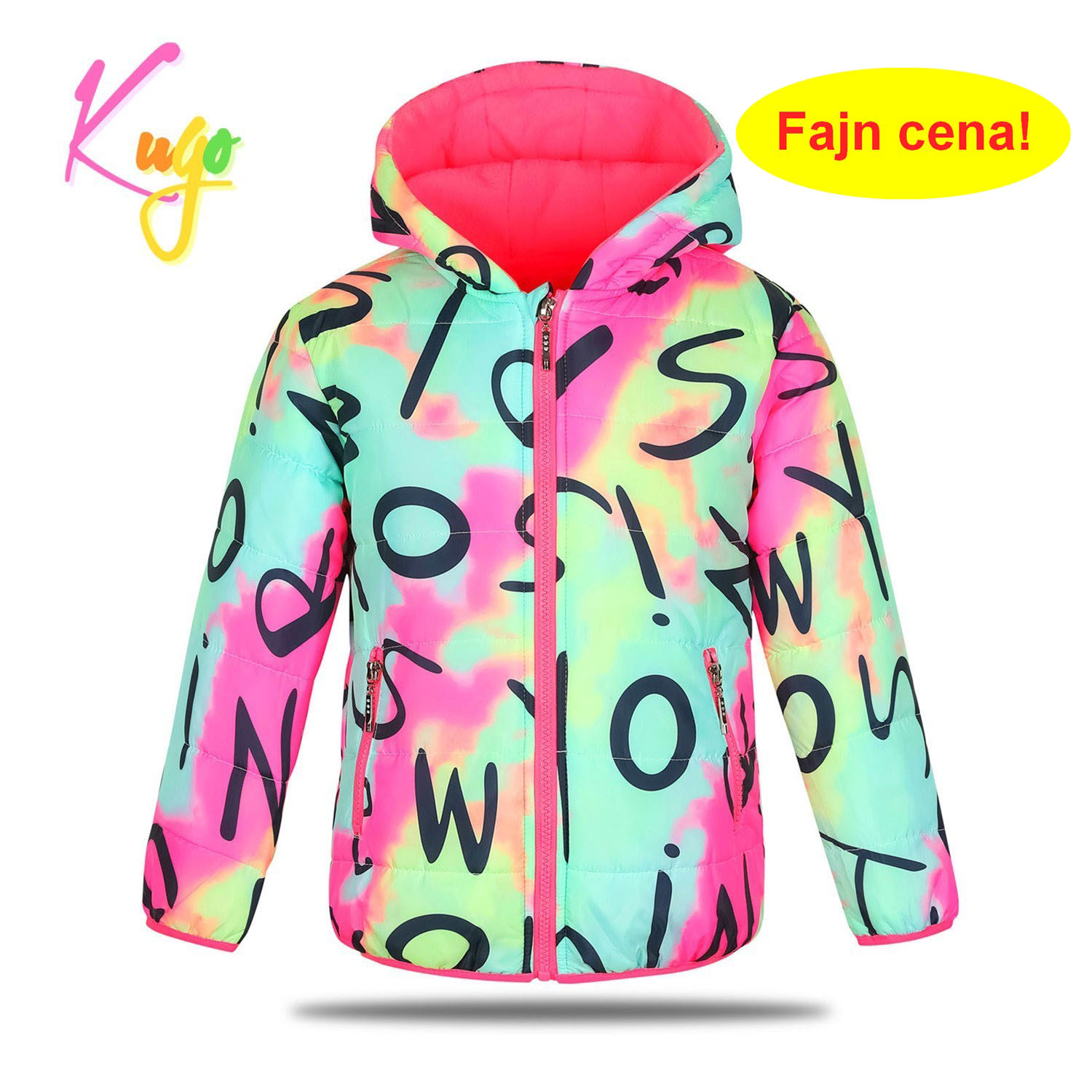 Dívčí zimní šusťáková bunda zateplená jemným flísem: Složení 100% polyester, bunda je prošívaná, vrchní materiál hladký matný šusťák, uvnitř teplá podšívka z jemného flísu, rukávy uvnitř zateplené a podšité šusťákem, zapínání po celé délce až ke krku, kde je krytí, kapuce je napevno, rukávy a dolní okraj mají pružný lem, na bocích dvě kapsy na zip. Bunda je vhodná na mírnou zimu.