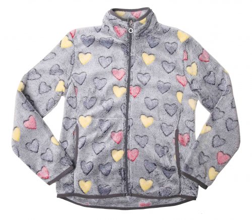 Dívčí teplá mikina WOLF chlup: Složení 100% polyester, velmi příjemný měkký hřejivý materiál, zapínání na zip po celé délce až ke krku, na bocích dvě kapsy, rukávy do manžet, na konci rukávů otvor na palec, dolní okraj mikiny lemovaný pružnou manžetou stejně jako rukávy.