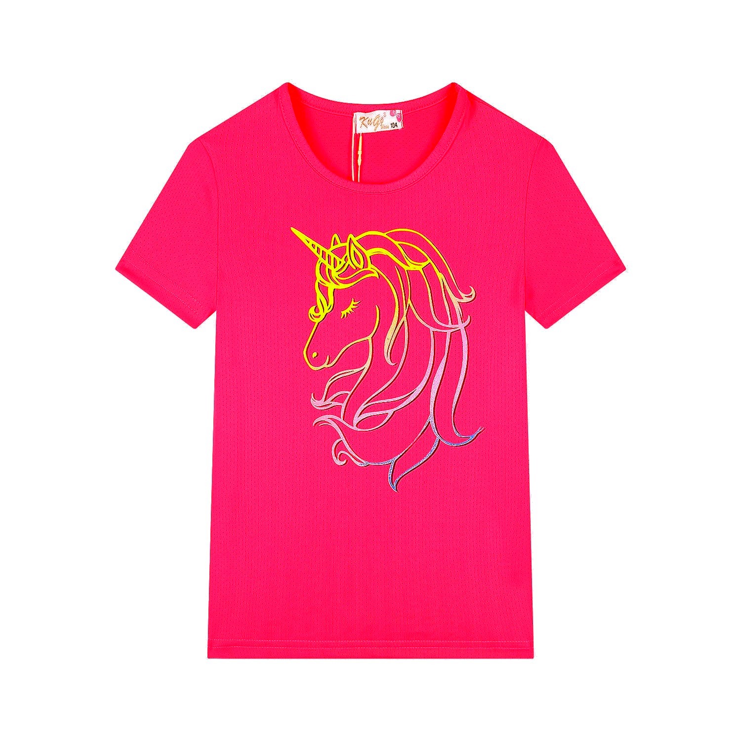 Dívčí funkční tričko KUGO: Složení 65% polyester, 35% bavlna, na předním díle obrázek jednorožce. Příjemný nemačkavý funkční materiál, který je vhodný na sport.