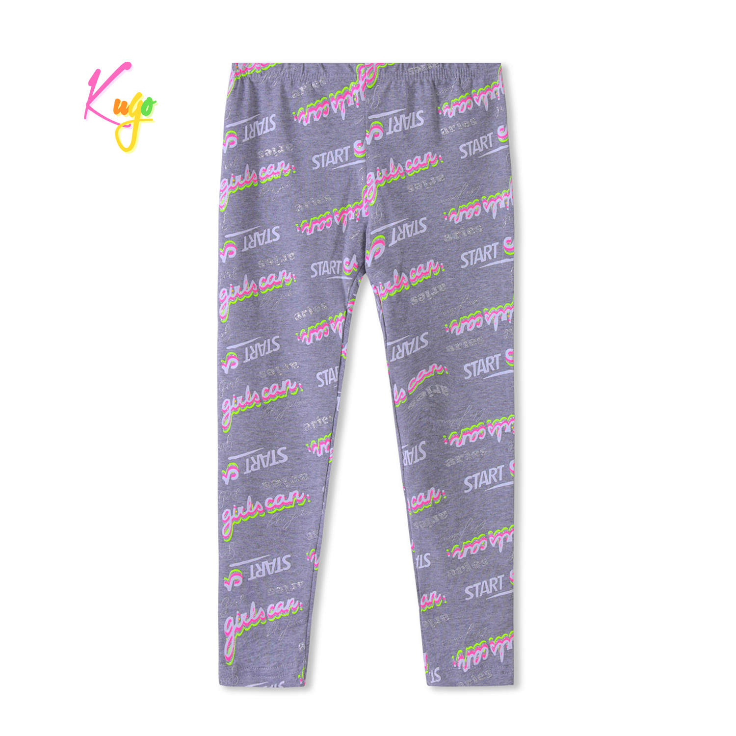 Dívčí legíny KUGO: Složení 95% balvna, 5% elastan, v pase pružná guma, po celém povrchu potisk s barevnými nápisy.
