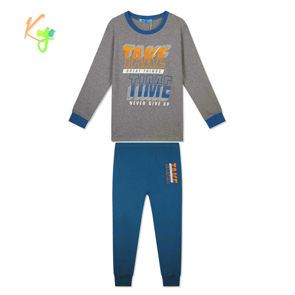 Chlapecké pyžamo KUGO: Složení 100% bavlna, v pase pružná guma, rukávy a nohavice do manžet, na pyžamu nápisy. Příjemný bavlněný materiál.