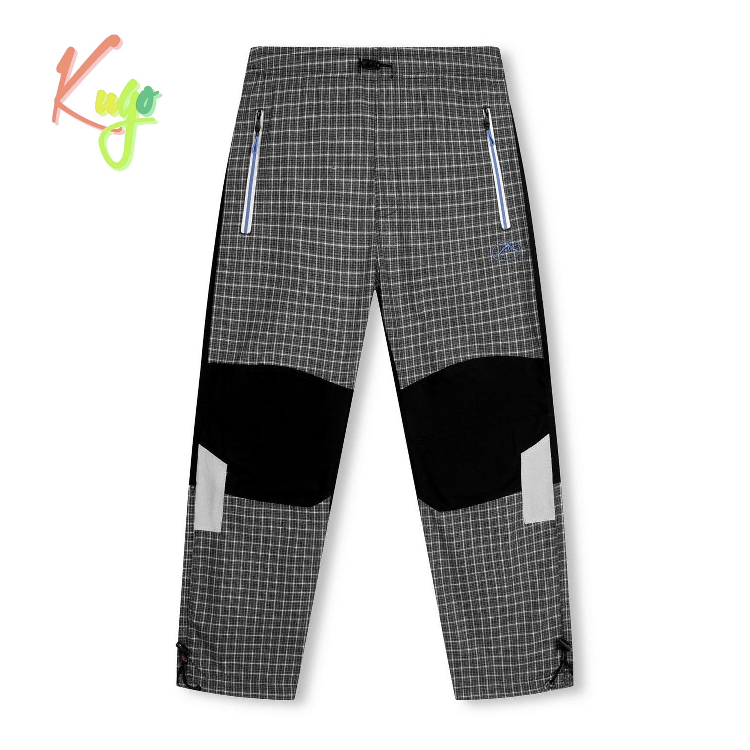 Chlapecké plátěné kalhoty KUGO: Složení 100% bavlna, lehký příjemný bavlněný materiál, v pase pružná guma + olivka na stažení, na bocích devě kapsy na zip. Na koncích nohavic také stahování.