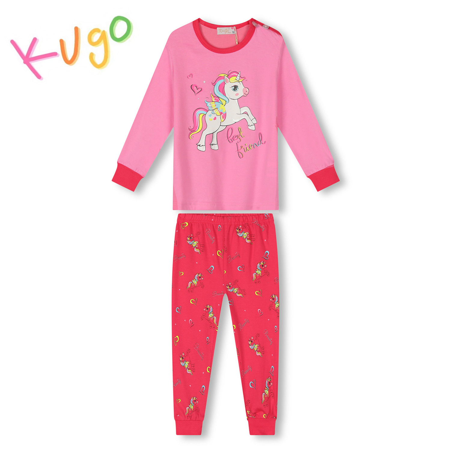 Dívčí pyžamo KUGO: Složení 100% bavlna, v pase pružná guma, rukávy a nohavice do manžet, na pyžamu veselé obrázky. Příjemný bavlněný materiál.