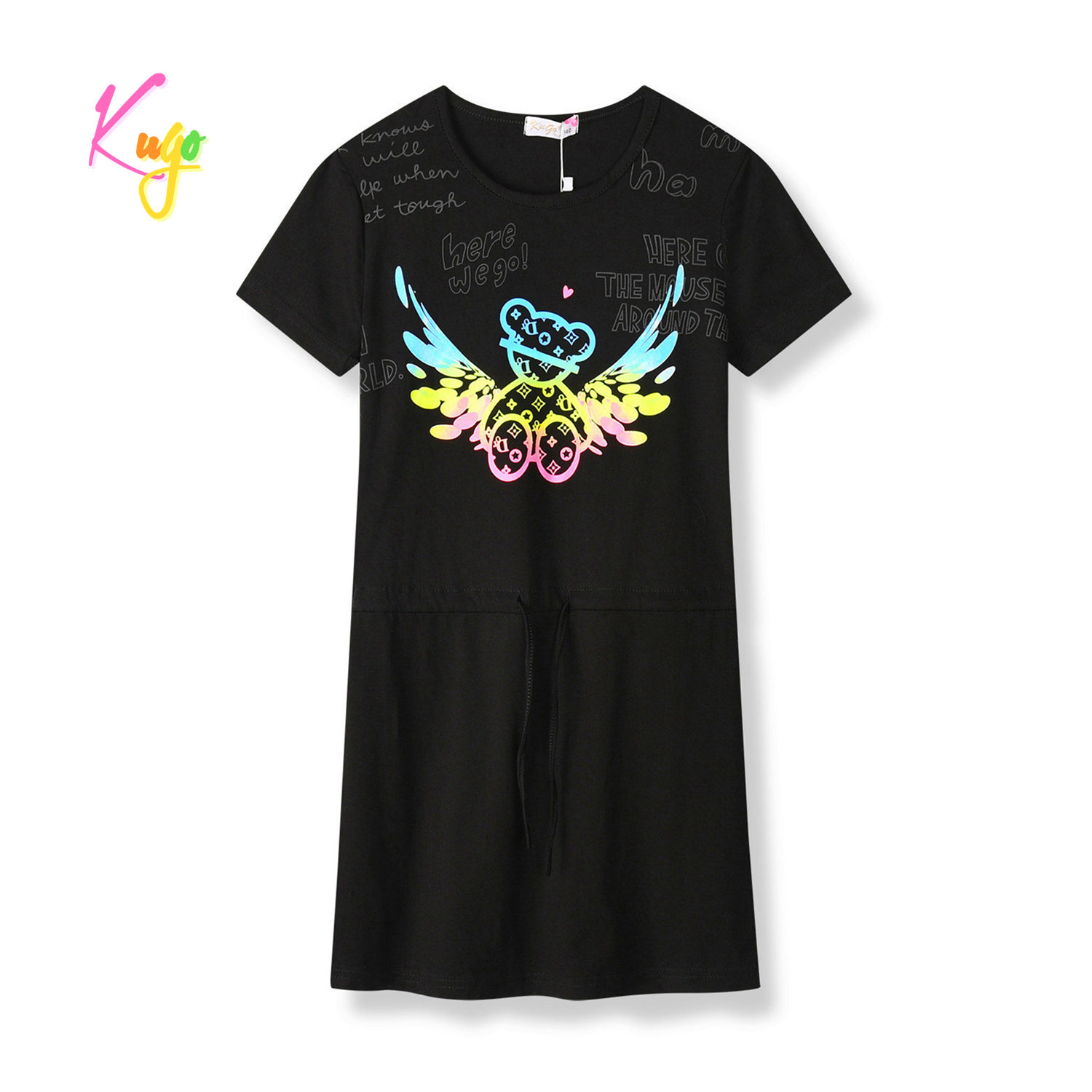 Dívčí šaty KUGO : Složení 95% bavlna, 5% elastan, kratší sportovní střih, v pase stahovací tkanička, barevný obrázek na předním díle.