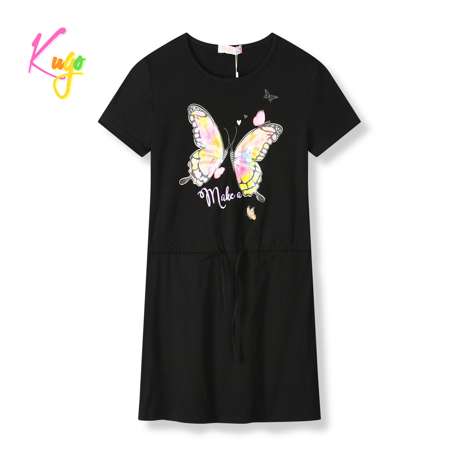 Dívčí šaty KUGO: Složení 95% bavlna, 5% elastan, na předním díle obrázek motýla, v pase tkanička na stažení.