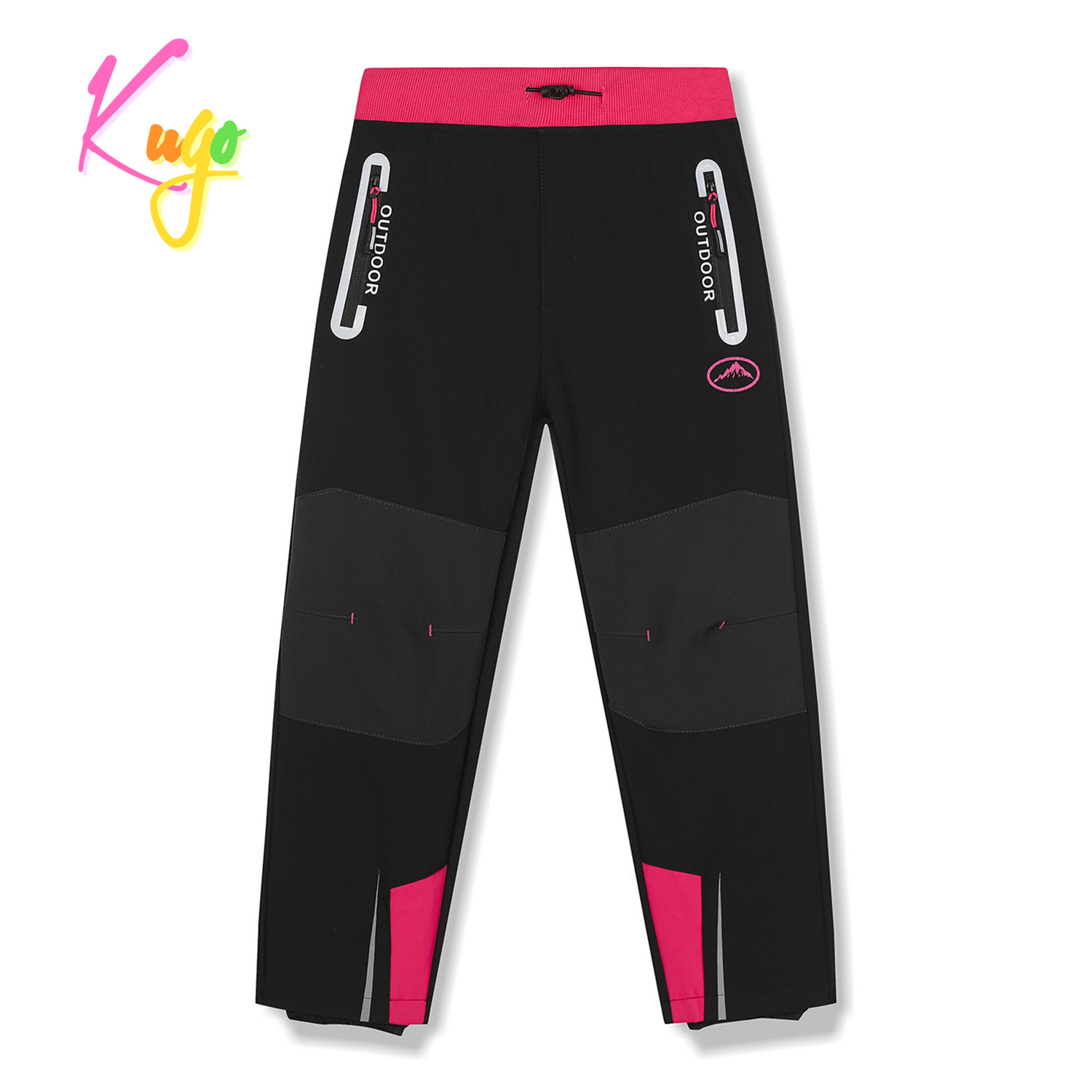 Dívčí zateplené softshellové kalhoty Kugo: Složení 100% polyester, nepromokavý povrch, uvnitř jemný flís, v pase pružná guma + stahování, na bocích kapsy na zip, reglexní prvky, pohodlný a prodyšný materiál. Vhodné na podzim a zimu do deště i sněhu. Na konci nohavic membrány proti vniknutí vody.