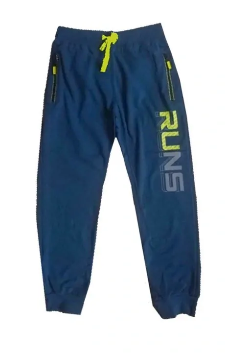 Chlapecké tepláky KUGO: Složení 100% bavlna, na bocích dvě kapsy na zip, v pase pružná guma, nohavice zakončené manžetami.