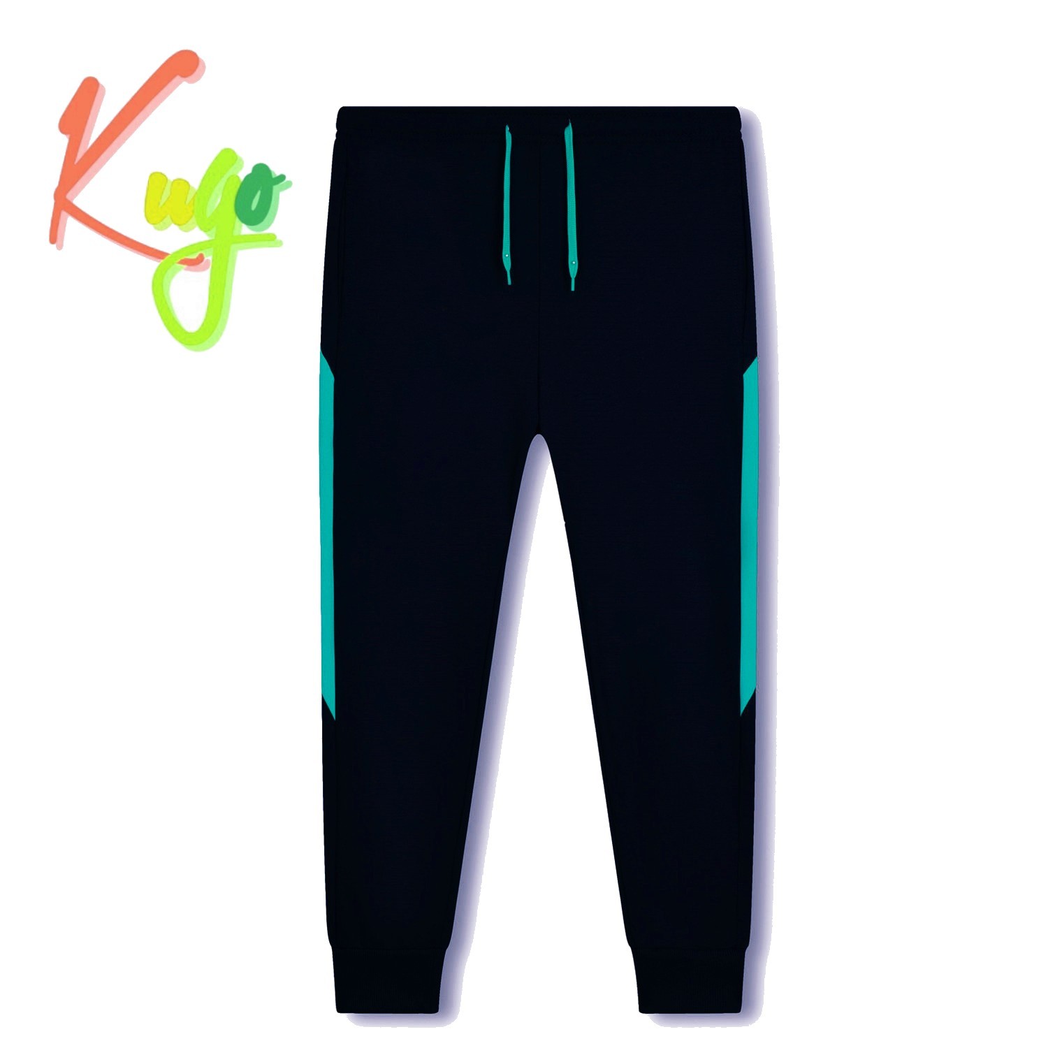 - Dětské tepláky KUGO WT7304B černé/tyrkysové pruhy vel.164
