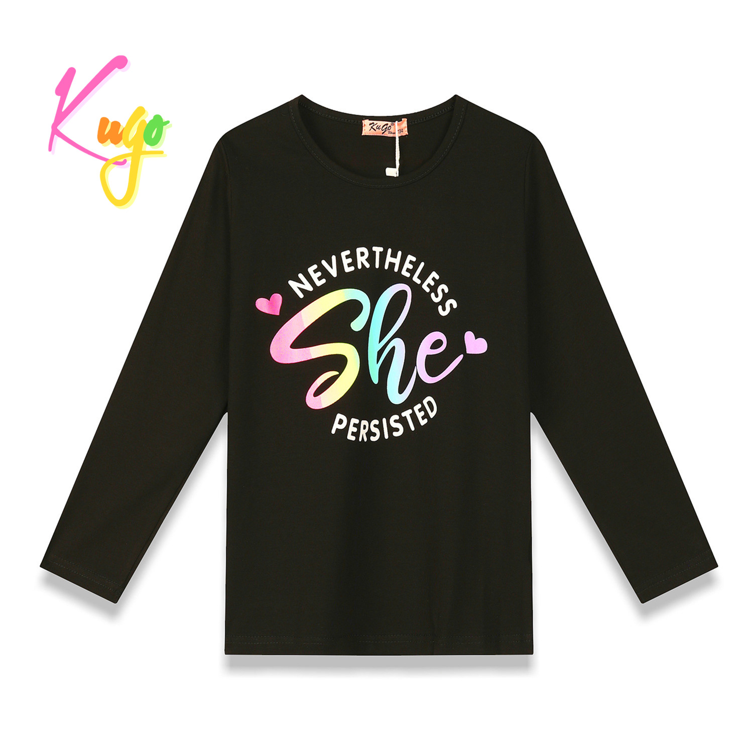 Dívčí tričko s dlouhým rukávem KUGO: Složení 95% bavlna, 5% elastan, na předním díle barevný nápis, velmi příjemný a kvalitní materiál.