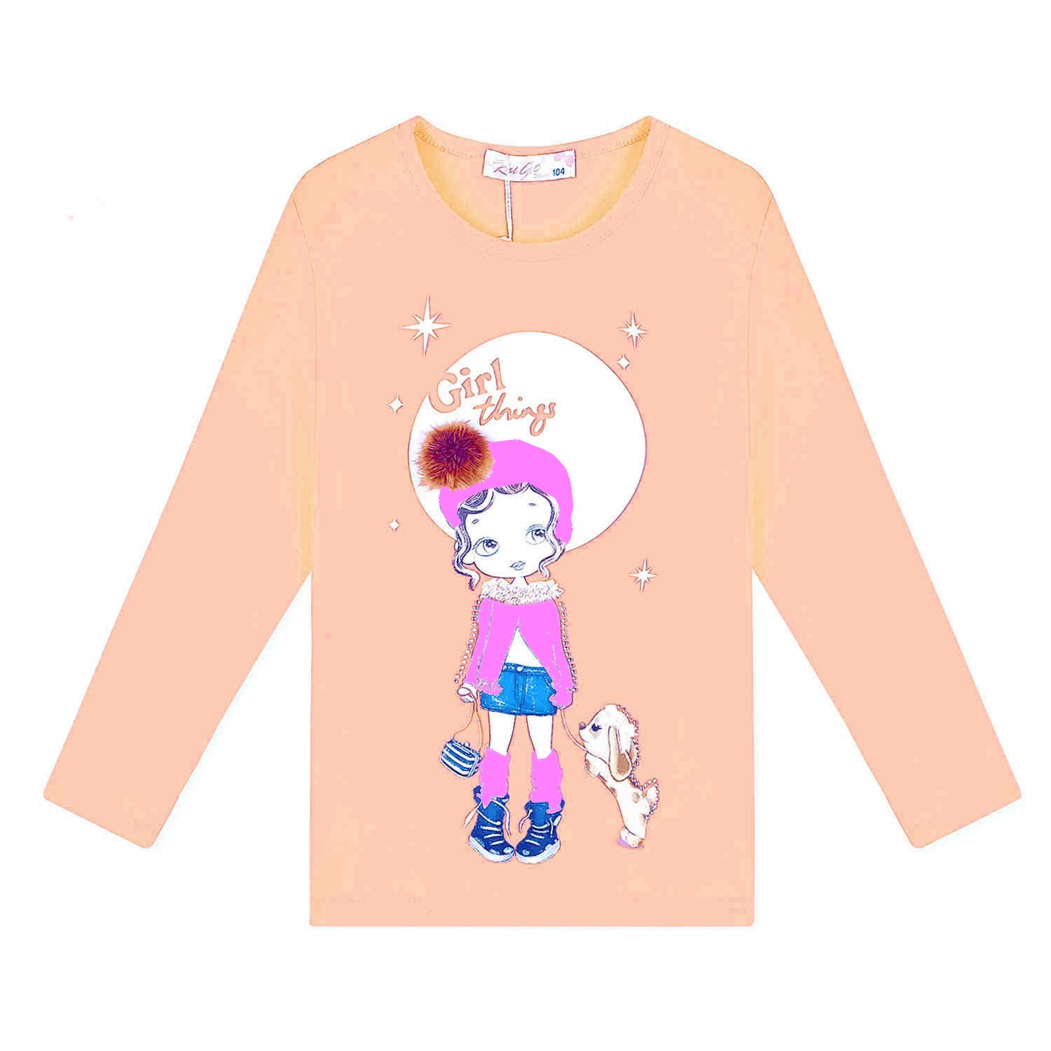 Dívčí tričko s dlouhým rukávem KUGO: Složení 95% bavlna, 5% elastan, na předním díle obrázek. Velmi příjemný a kvalitní materiál.