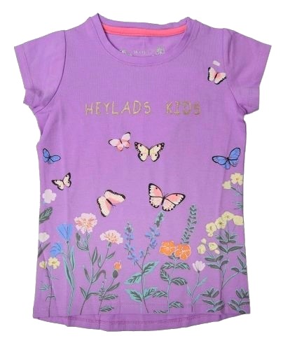 Dívčí tričko s krátkým rukávem WOLF: Složení 95% bavlna, 5% elastan, na předním díle obrázek motýlů. Velmi pohodlný a kvalitní materiál.