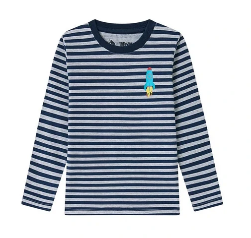 Chlapecké bavlněné tričko WOLF s proužky: Složení 100% bavlna, dlouhé rukávy, kulatý výstřih u krku, s předním potiskem.