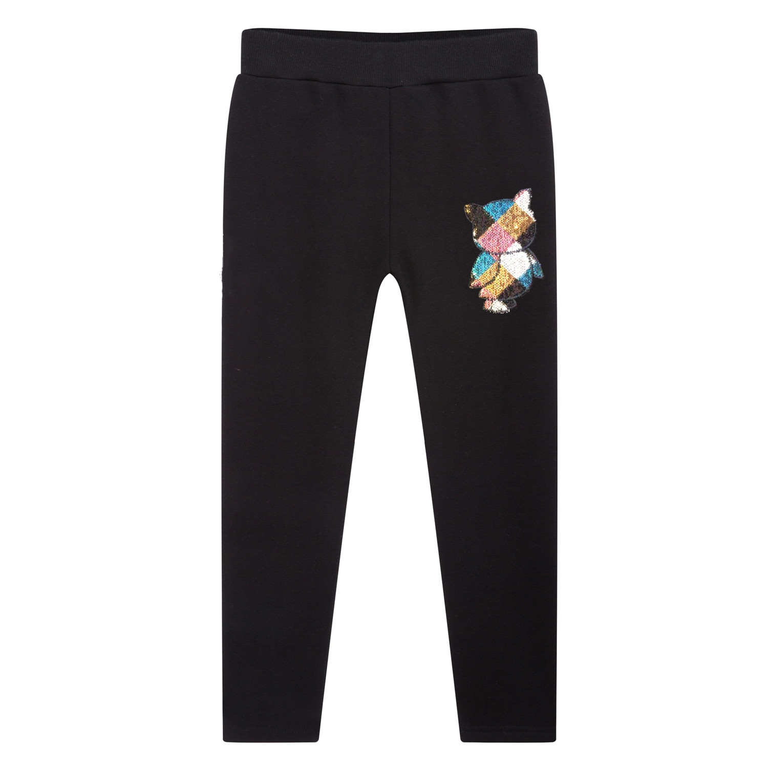 Dívčí zateplené legíny KUGO: Složení 95% bavlna, 5% elastan, uvnitř hřejivý chloupek, v pase pružná guma, na předním díle aplikace z lesklých flitrů.