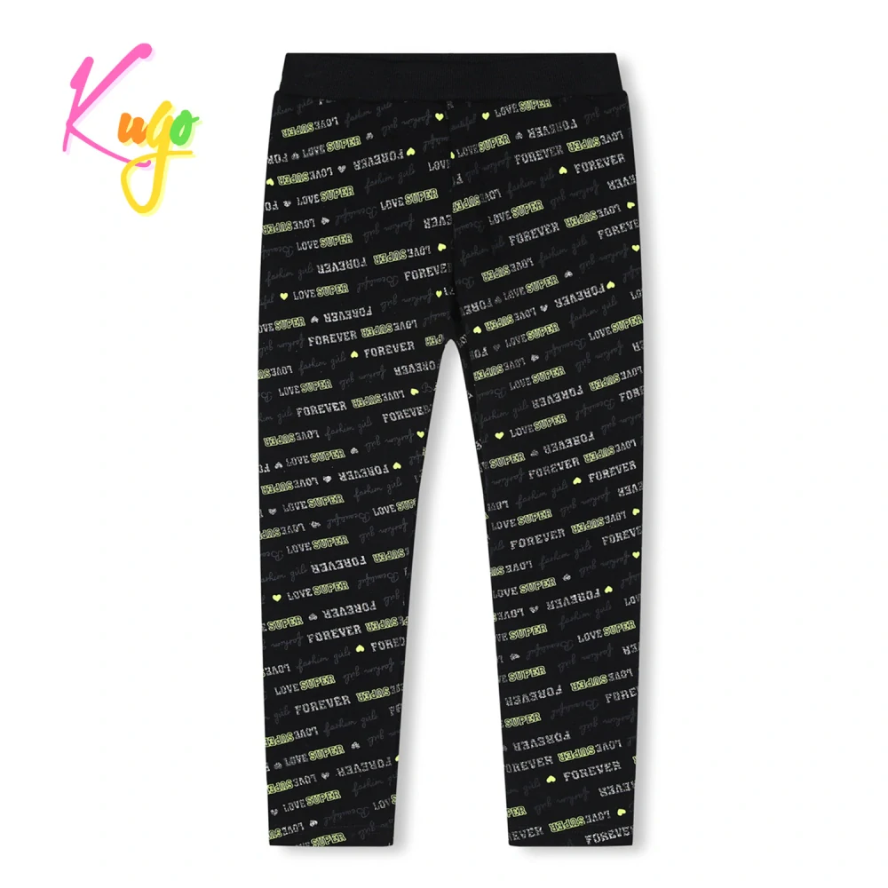 - Dětské zateplené legíny KUGO YL8745 černé + žluté nápisy vel.158