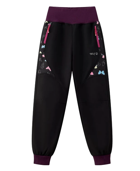 Dívčí zateplené softshellové kalhoty WOLF: Složení 100% polyester, uvnitř jemný flís, povrch nepromokne, neprofoukne, v pase vyšší pružný lem s pružnou gumou uvnitř, nohavice jsou do praktických manžet, na bocích jsou dvě kapsy na zip.