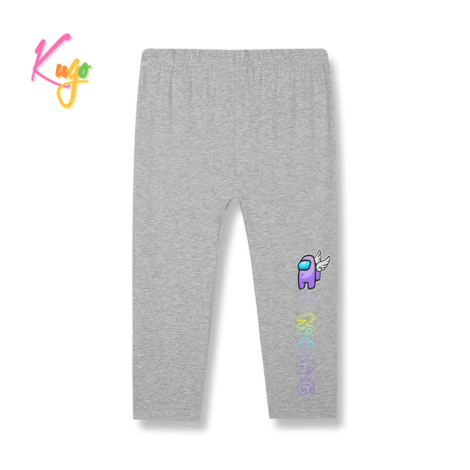 Dívčí 3/4 legíny KUGO: Složení 95% bavlna, 5% elastan, v pase pružná guma, na nohavici obrázek + nápis. Velmi příjemný pružný materiál.