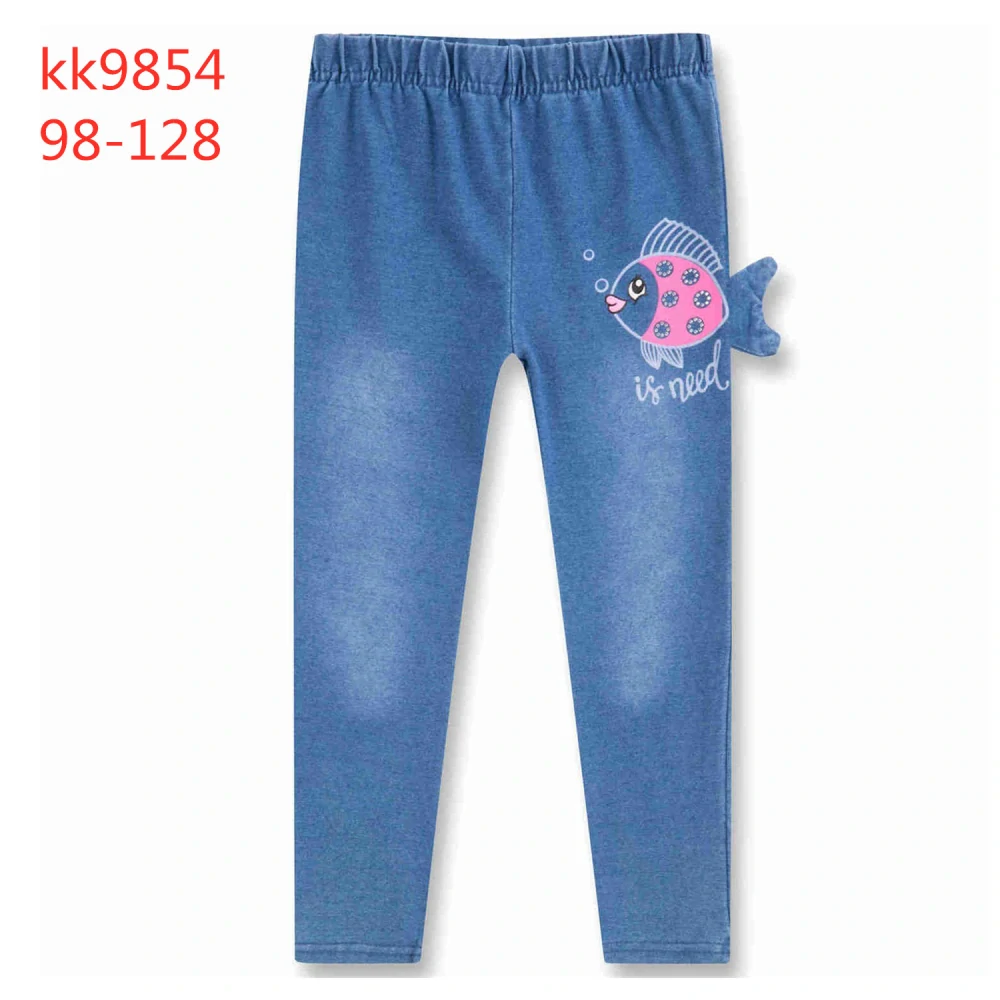 Dívčí pružné legíny/džegíny KUGO: Složení 95% bavlna, 5% elastan, riflový design, v pase pružná guma, s potiskem a kamínky.