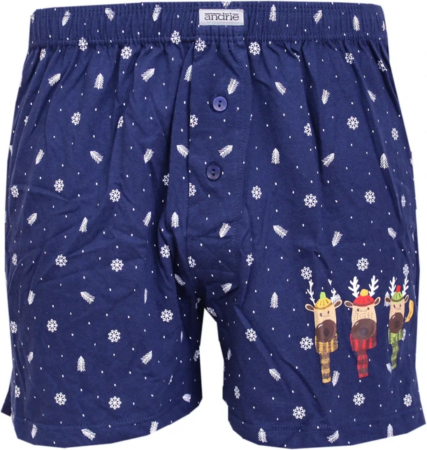 Pánské trenýrky s vánočním potiskem Andrie se zakrytou měkkou gumou v pase jsou vyrobeny z kvalitní bavlny. Na nohavicích jsou malé rozparky pro větší komfort a pohodlí. Poklopec s rozepínáním na dva knoflíčky. Složení 100% bavlna. Český výrobek!