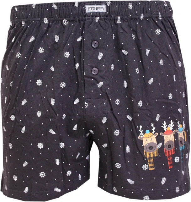 Pánské trenýrky s vánočním potiskem Andrie se zakrytou měkkou gumou v pase jsou vyrobeny z kvalitní bavlny. Na nohavicích jsou malé rozparky pro větší komfort a pohodlí. Poklopec s rozepínáním na dva knoflíčky. Složení 100% bavlna. Český výrobek!
