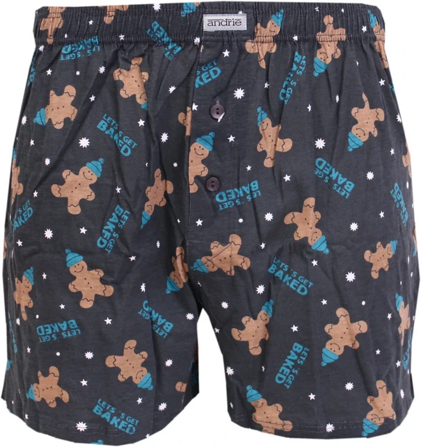 Pánské trenýrky s vánočním potiskem Andrie se zakrytou měkkou gumou v pase jsou vyrobeny z kvalitní bavlny. Na nohavicích jsou malé rozparky pro větší komfort a pohodlí. Poklopec s rozepínáním na dva knoflíčky. Složení 100% bavlna. Český výrobek!